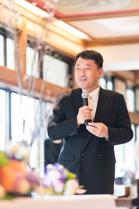 新郎お父様よりの謝辞。ここにいる全ての方々へこれまでの感謝とこれからも息子夫婦をヨロシクと伝えます。