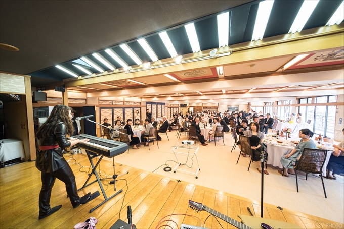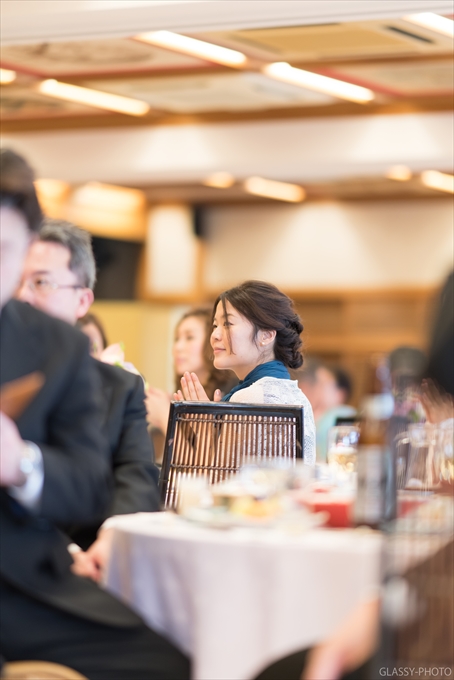 広々とした空間の披露宴会場ですのでカメラマンとしては動きやすくてありがたいのです。会場さんによってはゲスト席がギュウギュウで間を通れない!なんてとこもありますからね。そんな会場さんだとちょっと憂鬱になっちゃうのですが、ここは広くて助かります。